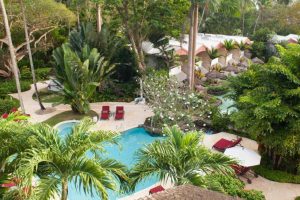A stylish but informal hotel set on tropical gardens which are home to four lagoon pools. There is a lovely open-air restaurant beside the sandy beach and there are lots of watersports too.