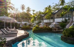 A stylish but informal hotel set on tropical gardens which are home to four lagoon pools. There is a lovely open-air restaurant beside the sandy beach and there are lots of watersports too.